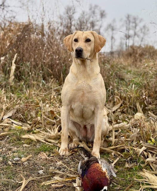 This cross is not only strong on paper, but both sire and dam bring exceptional looks, drive and intelligence to the table. As always, when you pair strong genetics with strong genetics you hope for continued enhancment of desired traits. Flash is a great marking dog that just ran 9 series in the 2025 National Open (handled by Loran Marmes). He is calm at the line, composed, and has that true On / Off switch everyone is looking for in a dog. Loran says you barely know he is in the house! Flash OFA Results: Hips - Good Elbows - Normal Eyes - Normal Amber was a keeper puppy out of a Floyd breeding that Contender Retrievers did. We raised her, and did her early puppy development. She was always a strong retriever and had a great nose, biddable personality and loved birds. She is now a guide dog for Contender in their pheasant operation in Northeast Iowa. She is well built (around 60 pounds), athletic and a very sweet dog. Amber is a more energetic dog but thrives on attention and companionship. Amber OFA Results: Hips - Excellent Elbows: Normal Eyes: Normal Pups will be $2000. For now, a waitlist will be formed and when pregnancy is confirmed, we will accept non-refundable deposits to hold your spot.
